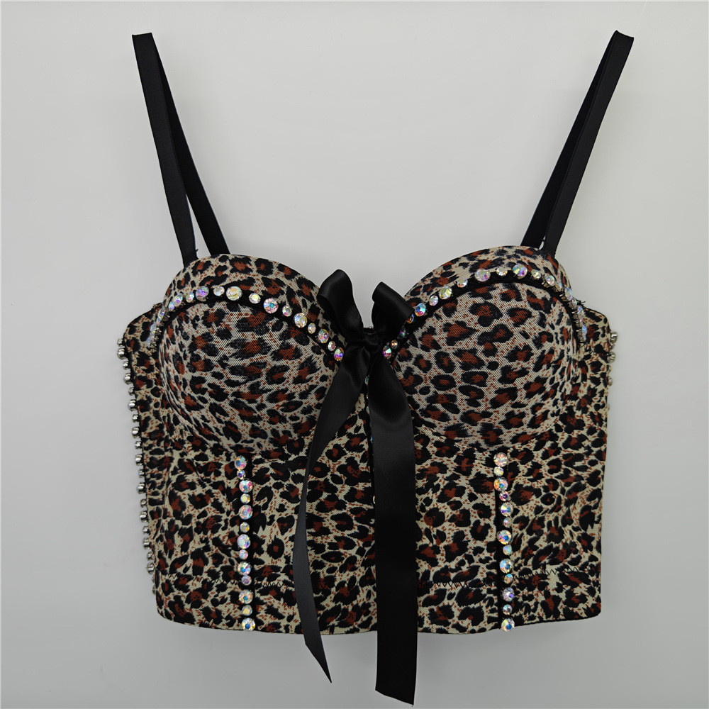 Яскравий та зухвалий корсет із леопардовим принтом, прикрашений блискучими стразами для створення ефектного образу. Модель доповнена атласним бантом і регульованими бретелями, які забезпечують ідеальну посадку. Корсет виконаний із якісного матеріалу, що добре тримає форму та підкреслює фігуру. Чудовий вибір для вечірніх заходів або сміливого стильного акценту.